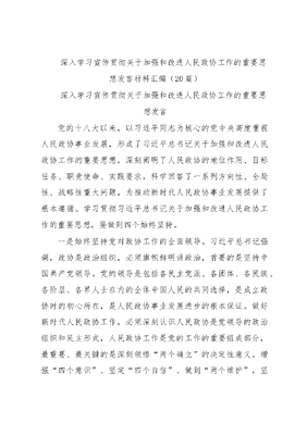 (20篇)深入学习宣传贯彻关于加强和改进人民政协工作的重要思想发言材料汇编.docx
