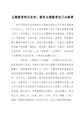 主题教育研讨发言:修好主题教育这门必修课.docx
