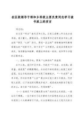 在区级领导干部和乡科级主要负责同志学习读书班上的发言.docx