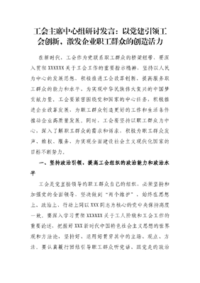 工会主席中心组研讨发言:以党建引领工会创新,激发企业职工群众的创造活力.docx