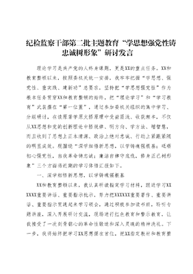 纪检监察干部第二批主题教育“学思想强党性铸忠诚树形象”研讨发言.docx