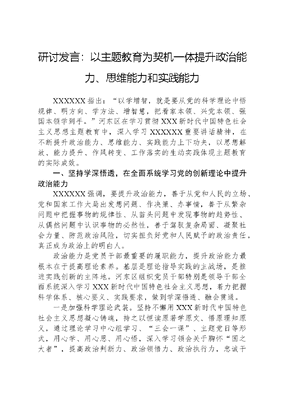 研讨发言:以主题教育为契机,一体提升政治能力、思维能力和实践能力.docx