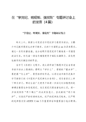 (4篇)在“学党纪、明规矩、强党性”专题研讨会上的发言.docx