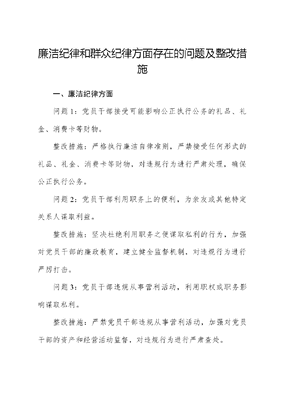 廉洁纪律和群众纪律方面存在的问题及整改措施(党纪学习教育对照剖析参考).docx