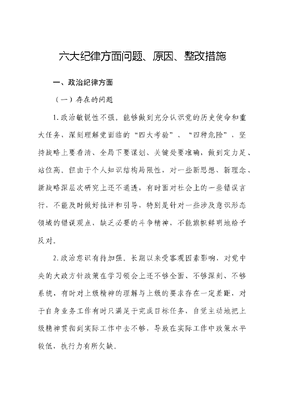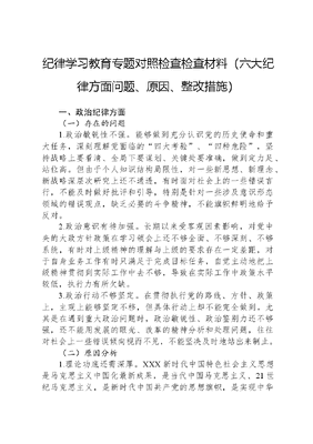 党纪学习教育专题对照检查检查材料(六大纪律方面问题、原因、整改措施).docx
