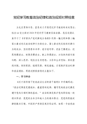 党纪学习教育个人政治纪律和政治规矩对照检查.docx
