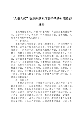 “六重六轻”突出问题专项整治活动对照检查材料.docx