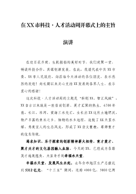 在XX市科技·人才活动周开幕式上的主旨演讲.docx
