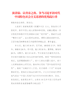演讲稿:以青春之我,争当习近平新时代中国特色社会主义思想的优秀践行者.docx