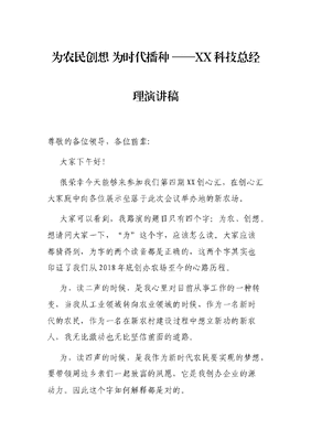 为农民创想 为时代播种 ——XX科技总经理演讲稿.docx