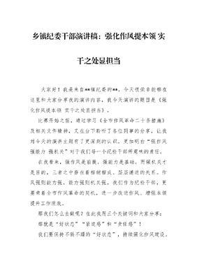 乡镇纪委干部演讲稿:强化作风提本领 实干之处显担当.docx