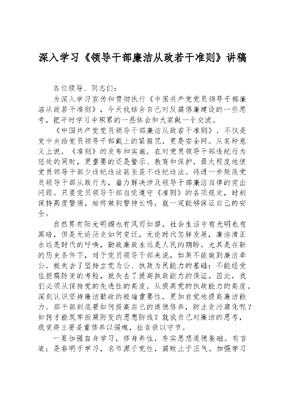 深入学习《领导干部廉洁从政若干准则》讲稿.docx