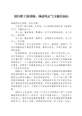 银行职工演讲稿:扬清风正气+守廉洁初心.docx