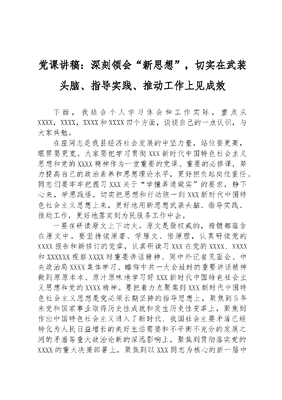 党课讲稿:深刻领会“新思想”,切实在武装头脑、指导实践、推动工作上见成效.docx