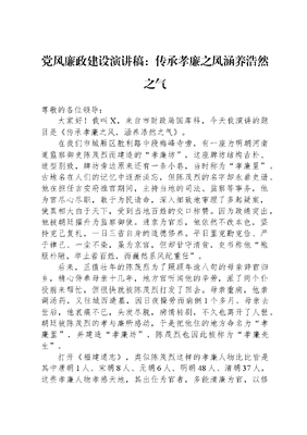 党风廉政建设演讲稿:传承孝廉之风,涵养浩然之气.docx