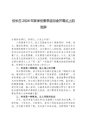 校长在2024年某学校春季运动会开幕式上的致辞.docx
