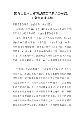 国有企业人力资源部经理竞聘纪委书记、工会主席演讲稿.docx