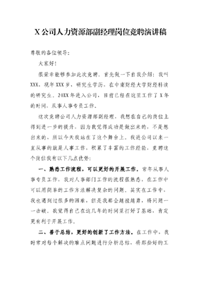 X公司人力资源部副经理岗位竞聘演讲稿.docx