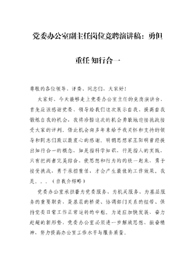 党委办公室副主任岗位竞聘演讲稿:勇但重任 知行合一.docx