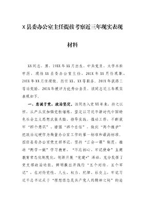 X县委办公室主任提拔考察近三年现实表现材料.docx