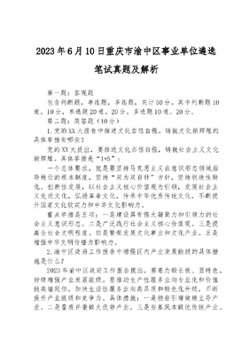2023年6月10日重庆市渝中区事业单位遴选笔试真题及解析.docx