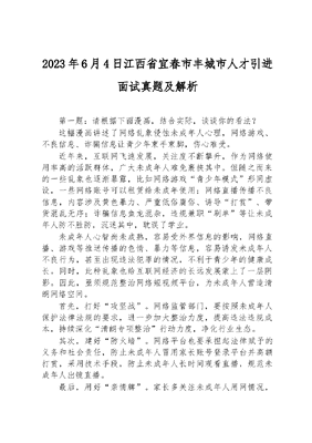 2023年6月4日江西省宜春市丰城市人才引进面试真题及解析.docx