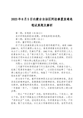2023年8月5日内蒙古自治区阿拉善盟直遴选笔试真题及解析.docx