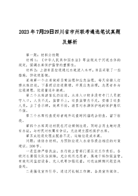 2023年7⽉29⽇四川省市州联考遴选笔试真题及解析.docx