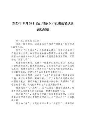 2023年8月26日浙江省丽水市直遴选笔试真题及解析.docx