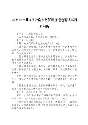 2023年9月3日云南省怒江州直遴选笔试真题及解析.docx