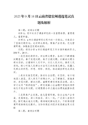 2023年9月16日云南省德宏州遴选笔试真题及解析.docx