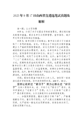 2023年9月17日山西省直遴选笔试真题及解析.docx