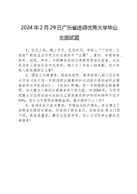 2024年2月29日广东省选调优秀大学毕业生面试题.docx