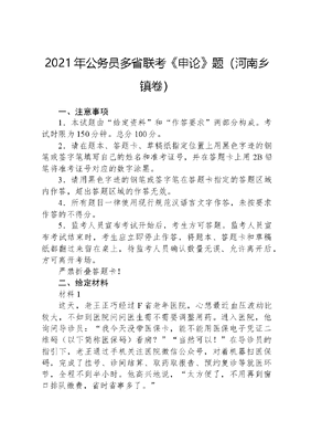 2021年公务员多省联考《申论》题(河南乡镇卷).docx