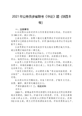 2021年公务员多省联考《申论》题(陕西B卷).docx