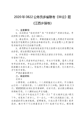 2020年0822公务员多省联考《申论》题(江西乡镇卷).docx
