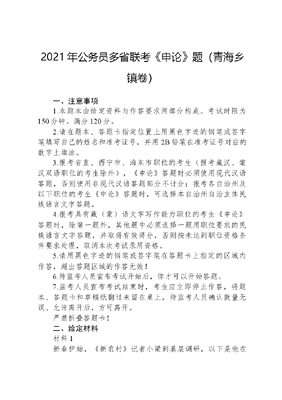 2021年公务员多省联考《申论》题(青海乡镇卷).docx