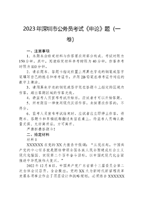 2023年深圳市公务员考试《申论》题(一卷).docx