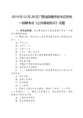 2019年12月28日广西法院聘用制书记员统一招聘考试《公共基础知识》试题.docx