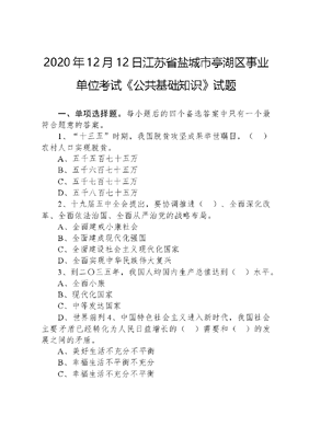 2020年12月12日江苏省盐城市亭湖区事业单位考试《公共基础知识》试题.docx
