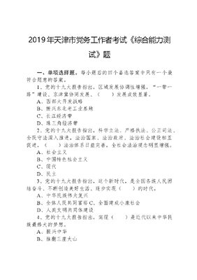 2019年天津市党务工作者考试《综合能力测试》题.docx