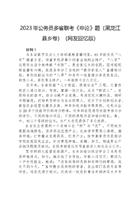 2023年公务员多省联考《申论》题(黑龙江县乡卷)(网友回忆版)+.docx