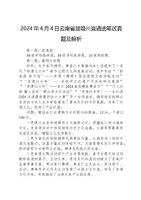 2024年4月4日云南省楚雄州直遴选笔试真题及解析.docx