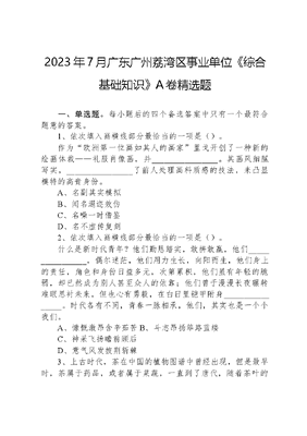 2023年7月广东广州荔湾区事业单位《综合基础知识》A卷精选题.docx