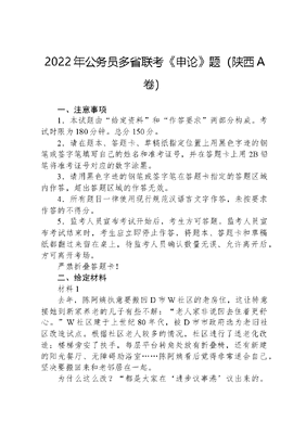 2022年公务员多省联考《申论》题(陕西A卷).docx