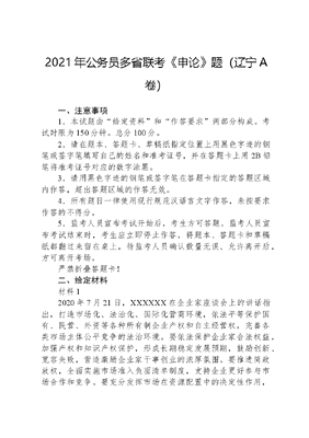 2021年公务员多省联考《申论》题(辽宁A卷).docx