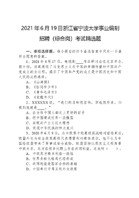 2021年6月19日浙江省宁波大学事业编制招聘(综合岗)考试精选题.docx