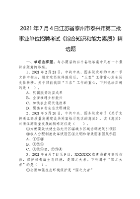 2021年7月4日江苏省泰州市泰兴市第二批事业单位招聘考试《综合知识和能力素质》精选题.docx
