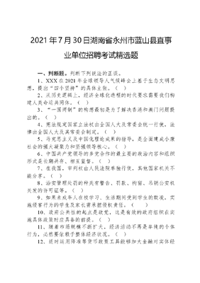 2021年7月30日湖南省永州市蓝山县直事业单位招聘考试精选题.docx