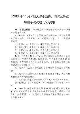 2019年11月2日天津市西青、河北区事业单位考试试题(文综类).docx